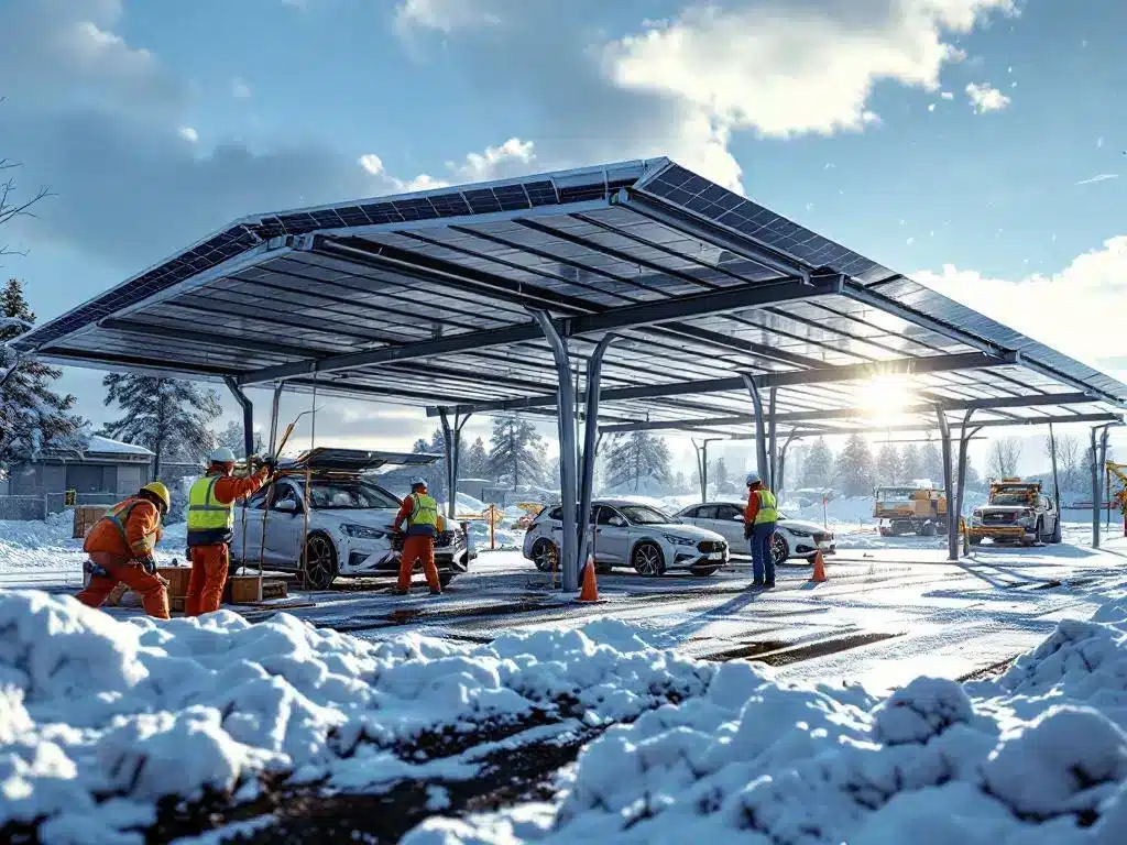 Een zonnepanelencarportproject duurt in de winter 20–30% langer dan onder ideale weersomstandigheden. Voor een standaard carport van 10–20 parkeerplaatsen moet je rekenen op 6–8 weken in plaats van de gebruikelijke 4–6 weken in de zomer. Grotere projecten kunnen 10–14 weken in beslag nemen.