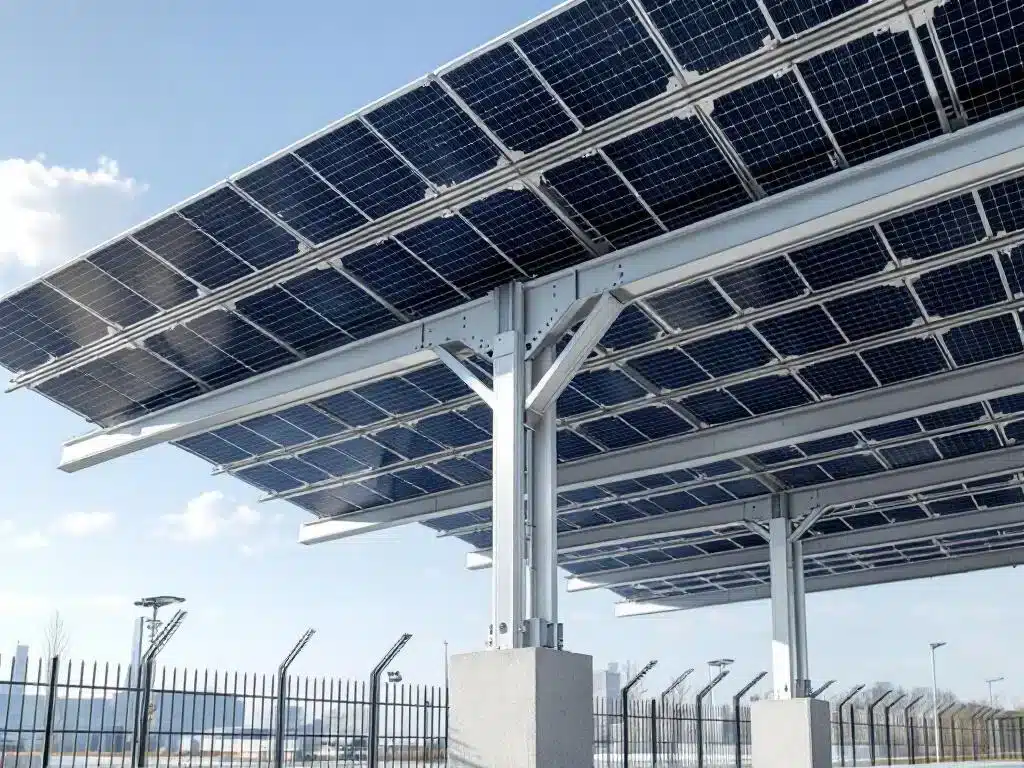 Een steunstructuur voor een zonnepanelen carport moet minimaal 2,5 kN/m² draagkracht hebben om het gewicht van de panelen, sneeuwlast en windkrachten veilig te dragen. Deze waarde omvat een veiligheidsfactor van 1,5 voor structurele integriteit onder alle weersomstandigheden.