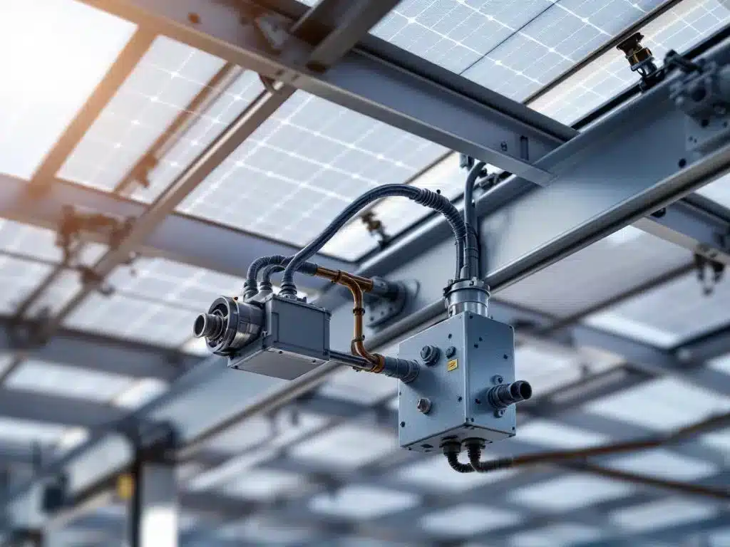 Bekabeling moet UV-bestendig zijn en geschikt voor buitengebruik. MC4-connectoren zorgen voor waterdichte verbindingen tussen panelen. Alle geleiders moeten minimaal 4 mm² zijn voor een veilige stroomgeleiding en een spanningsverlies van minder dan 1%.